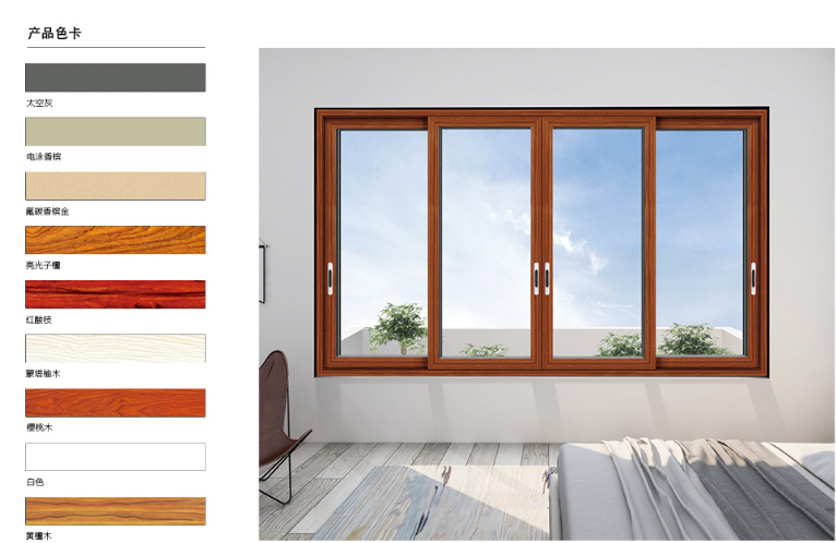 氟泳咖啡、太空灰、電泳香槟、氟碳香槟金、亮光(guāng)紫檀、紅酸枝、蒙塔榆木、櫻桃木、白(bái)色、黃檀木